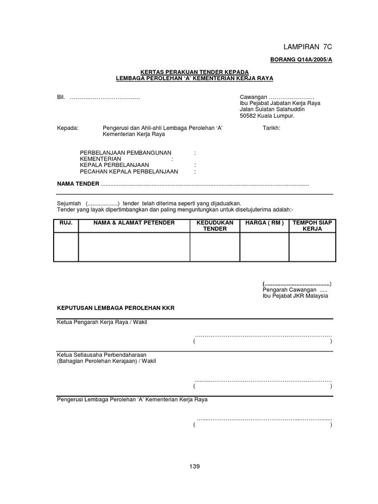 Bppk 157 from imgv2-1-f.scribdassets.com Cari duit raye lebih sikit. In 2017, as part of the government initiative to reduce energy consumption and to upgrade older government assets, a tender was issued by to upgrade all lighting in block a. Ibu pejabat pusat khidmat kontraktor, kementerian kerja raya malaysia, aras 5 blok menara dan podium, no. Notis tender jkr sabah untuk bulan mac 2021. Penataan bangunan kawasan pusaka masjid raya baiturahman kota semarang spse 4.3. Kementerian kerja raya malaysia, kuala lumpur, malaysia. 18, tingkat 3, bangunan umno, persiaran perdana, presint 2, jalan hang tuah pusat pentadbiran kerajaan persekutuan, 75300 melaka 62100 putrajaya. Malaysia manufacturer of , see info for all products/services from kementerian kerja raya.